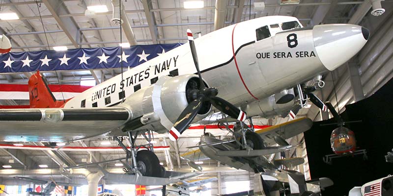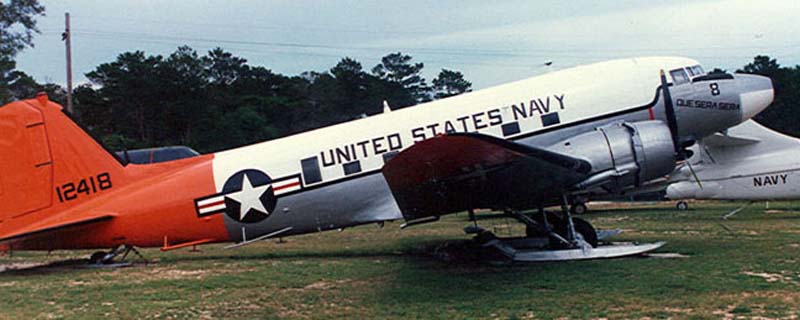 The Douglas C-47 "Skytrain" (designated R4D by the Navy) was a military version of the famous DC-3 utilized for commercial air transport in the late 1930s. Of the 13,000 plus models built, 10,123 were constructed for the military with 568 of them procured by the Navy. The R4Ds were put to immediate use by the Navy after the Japanese attack on Pearl Harbor by establishing the Naval Air Transport Service (NATS) and equipping three transport squadrons with the "Skytrain" for flights between mainland United States and points overseas. Thirteen NATS squadrons would ultimately be equipped with the R4D.