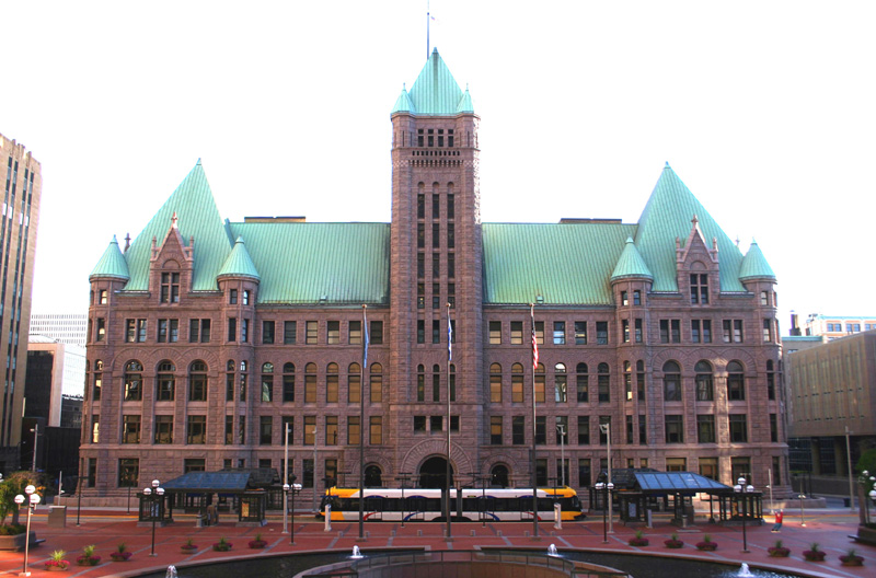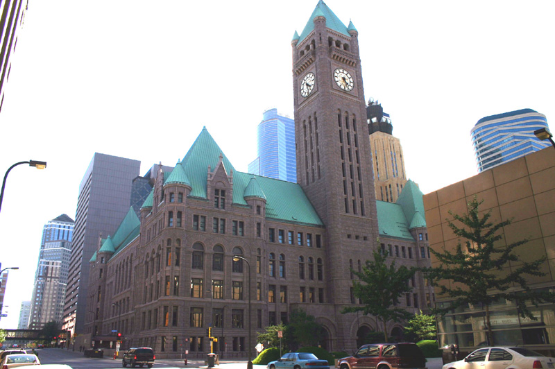Minneapolis each occupied half of the building. The County
